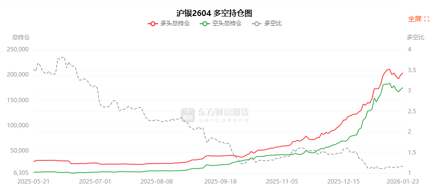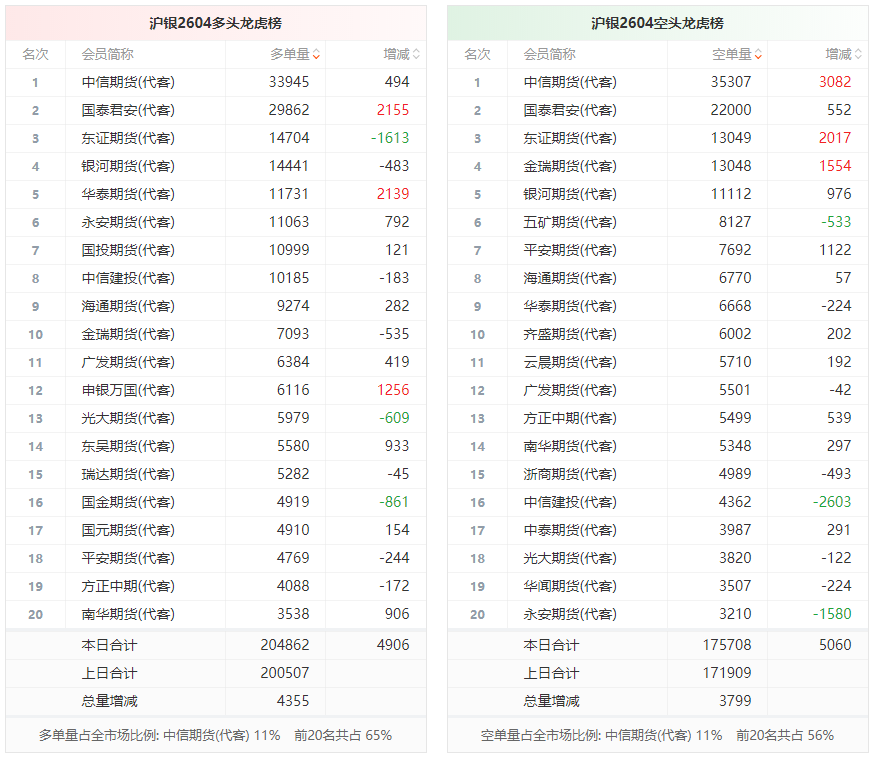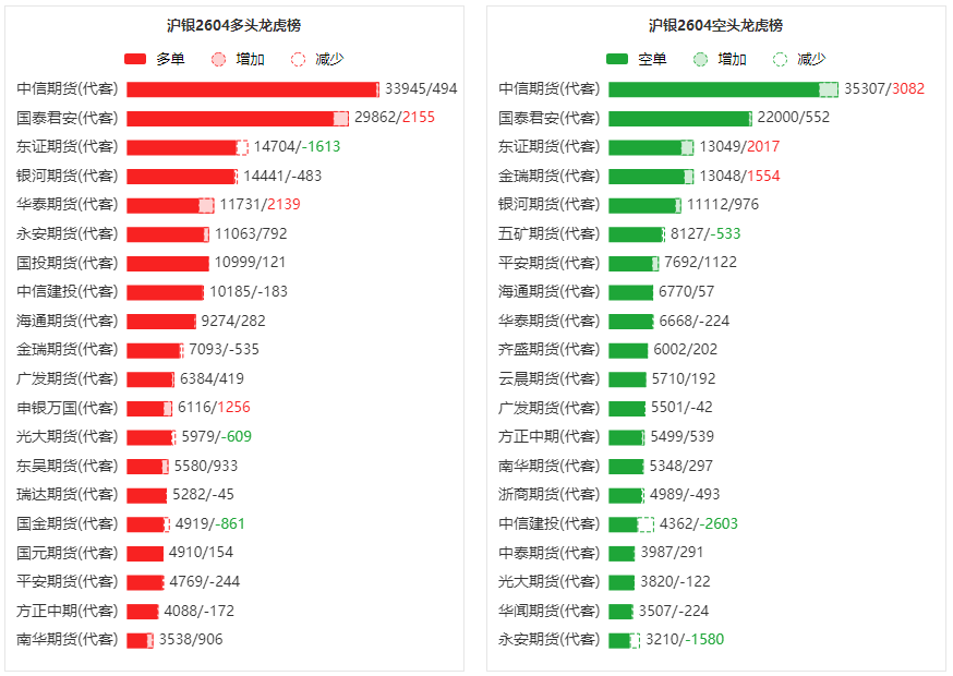 总体而言,沪银2604合约今日增仓上行,多空持仓排名前20席中,多空双方均呈进场态势,多头进场意愿强于空头。